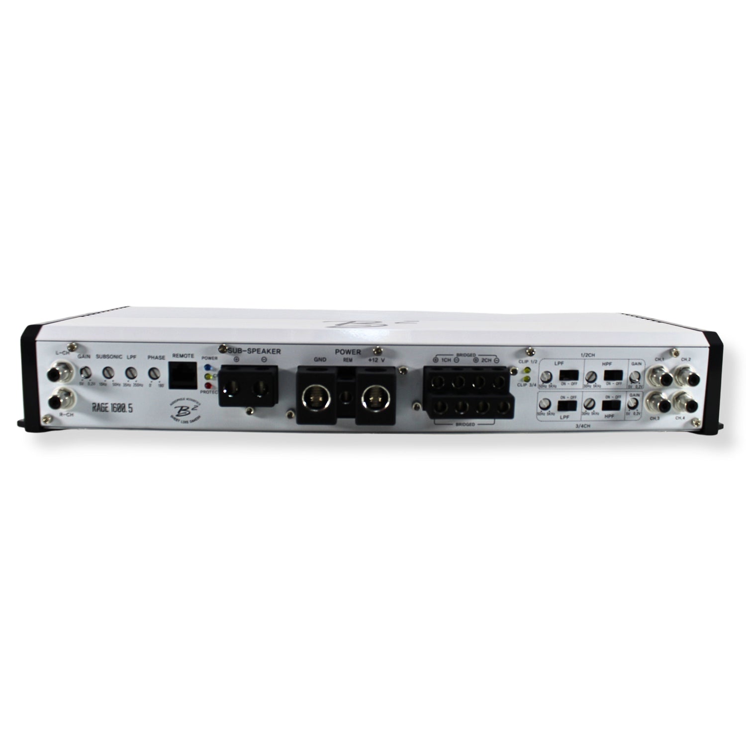 Unleash the fury of the B2 Audio RAGE 5-Channel 1.6k Watt Amplifier and dominate your car audio landscape with relentless power and precision. This Class D amplifier doesn't just deliver sound it unleashes a sonic onslaught, boasting an uncompromising total output of 1600W that'll have your speakers trembling with anticipation. With RMS power ranging from 670W to 1600W, it's not just about power; it's about versatility and flexibility, allowing you to configure your speakers for maximum impact. And with the included bass knob/volt meter, you'll have total command over your audio domain, effortlessly fine-tuning your settings on the fly.